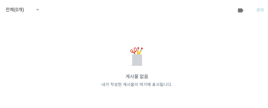 블로그가 1개 만들어 졌습니다. 사실 여기까지는 쉽고 간단합니다. 다소 투박하고 이게 뭐지 싶은 화면은 스킨 변경으로 나에게 맞는 블로그로 만들 수 있습니다.