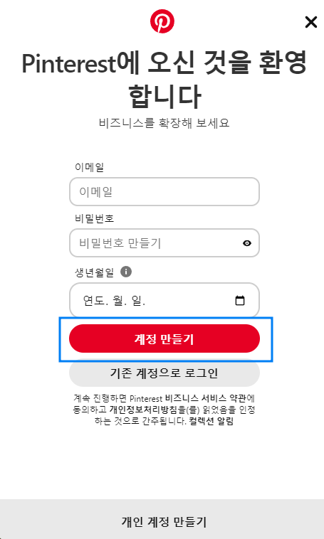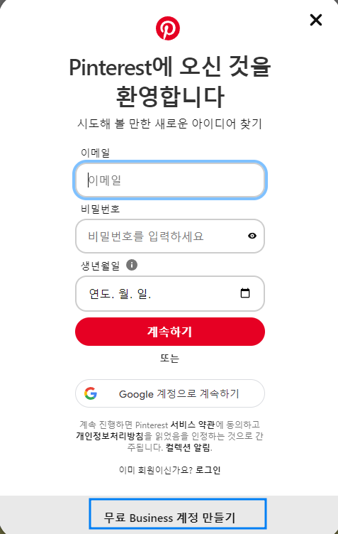 1단계 : 핀터레스트 홈페이지 접속 후 회원가입하기