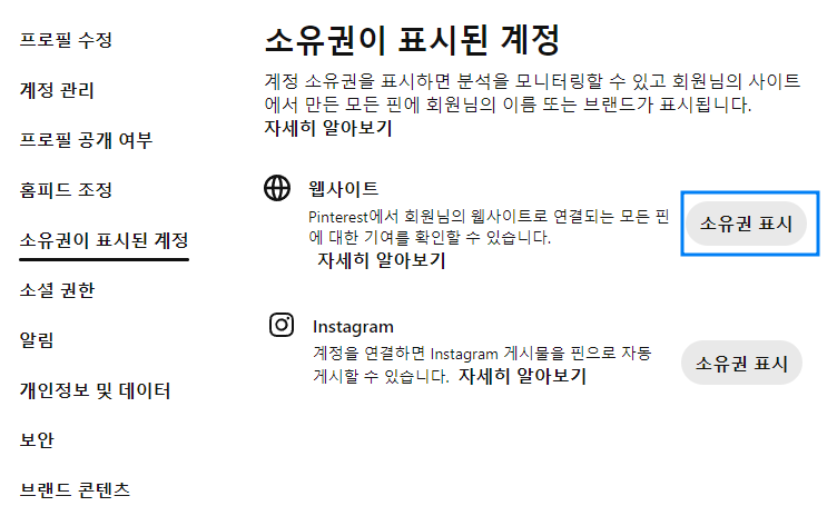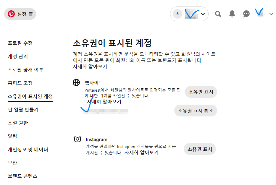 7단계 : 웹사이트 소유권 표시 선택 후 다음 클릭하기