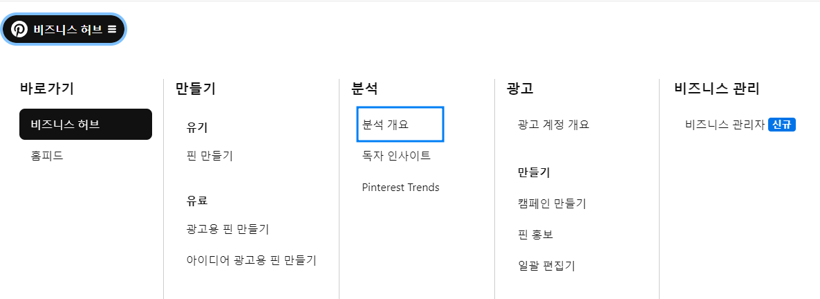 설정완료까지 마무리했다면 이제부터 핀터레스트에 자동으로 게시물이 게시됩니다. 등록한 블로그의 게시물 및 시간에 따른 성과(노출수, 클릭 수 등) 확인 방법은 핀터레스트 항목 중 분석 개요를 선택하시면 됩니다.